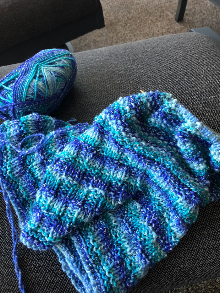 I’m knitting a blanket for our ninth grandchild, who is due to make an appearance in Houston in December.
