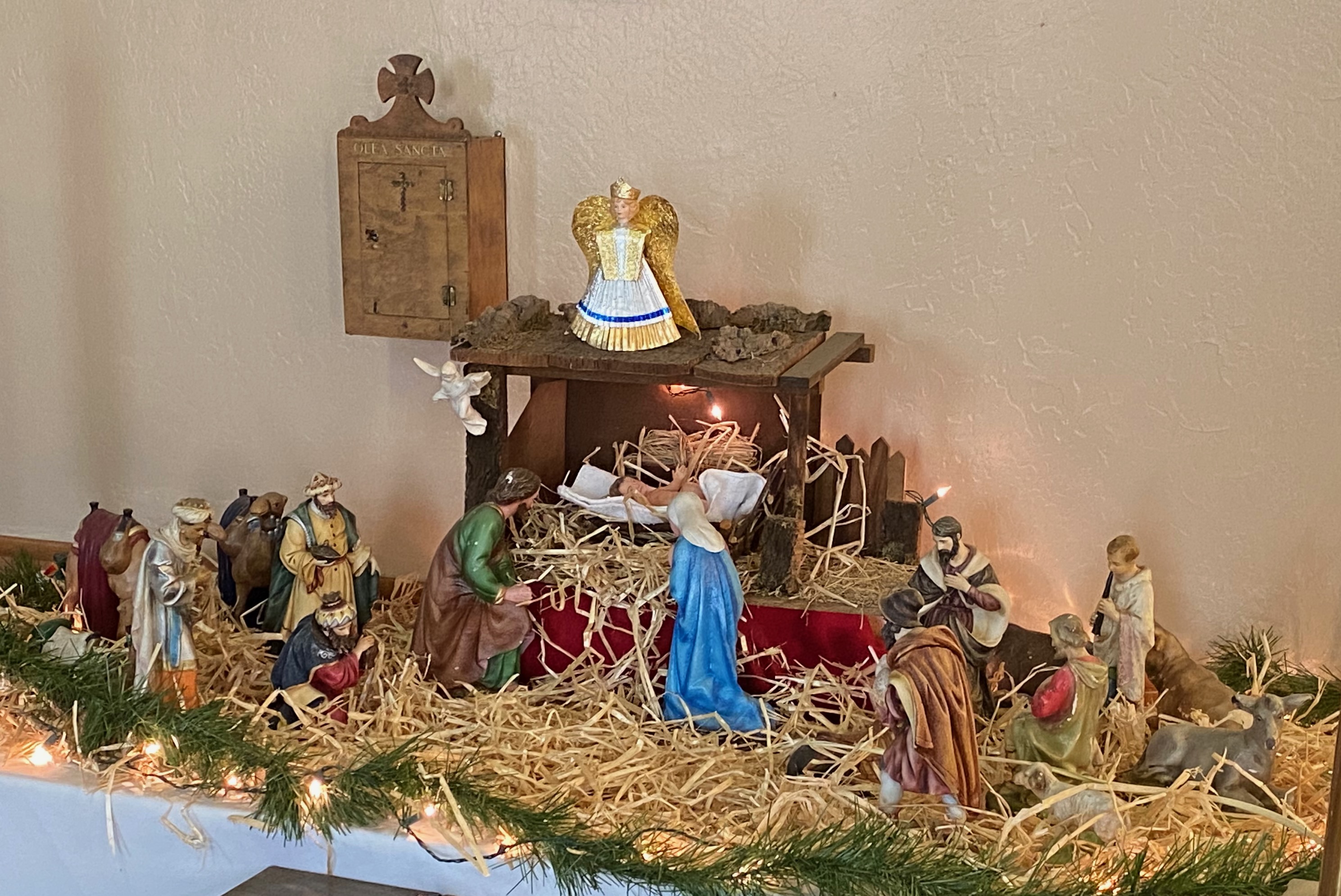 Interrupting the rhythm of my usual prayers, the tree and creche transported me back nearly 40 years to a few days before Christmas. Our children each had a role in a Nativity play in our little church community. A shiny foil covered cardboard star surrounded five-year-old Jonathan’s face making him the Star of Bethlehem. Three year old Cana dressed in a gold bell-shaped dress enthusiastically rang bells while we sang Joy to the World. Two-year-old Christopher wore a robe and a head covering depicting a shepherd.