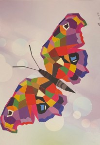 I recently flew all the way to Houston and stayed in my daughter, Xhiv’s apartment for a few days. One day we carefully pulled colorful stickers off one piece of paper attaching them to corresponding numbered spaces on another, creating mosaics. Hers was a cheetah, or was it a leopard? Mine was a butterfly. Later we sorted puzzle pieces, creating first the frame and then filling in a pleasing scene with flowers, a red wagon, and playful animals. I began to color an intricately decorated elephant, and when it felt tedious put it away until later, completing it over the course of my stay. Such activities ordered and soothed my brain, a welcome respite from unpredictable emotions.