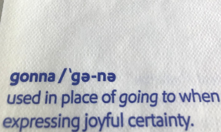 I couldn’t hold back tears when I saw the word “gonna” and it’s “definition” on the napkin.