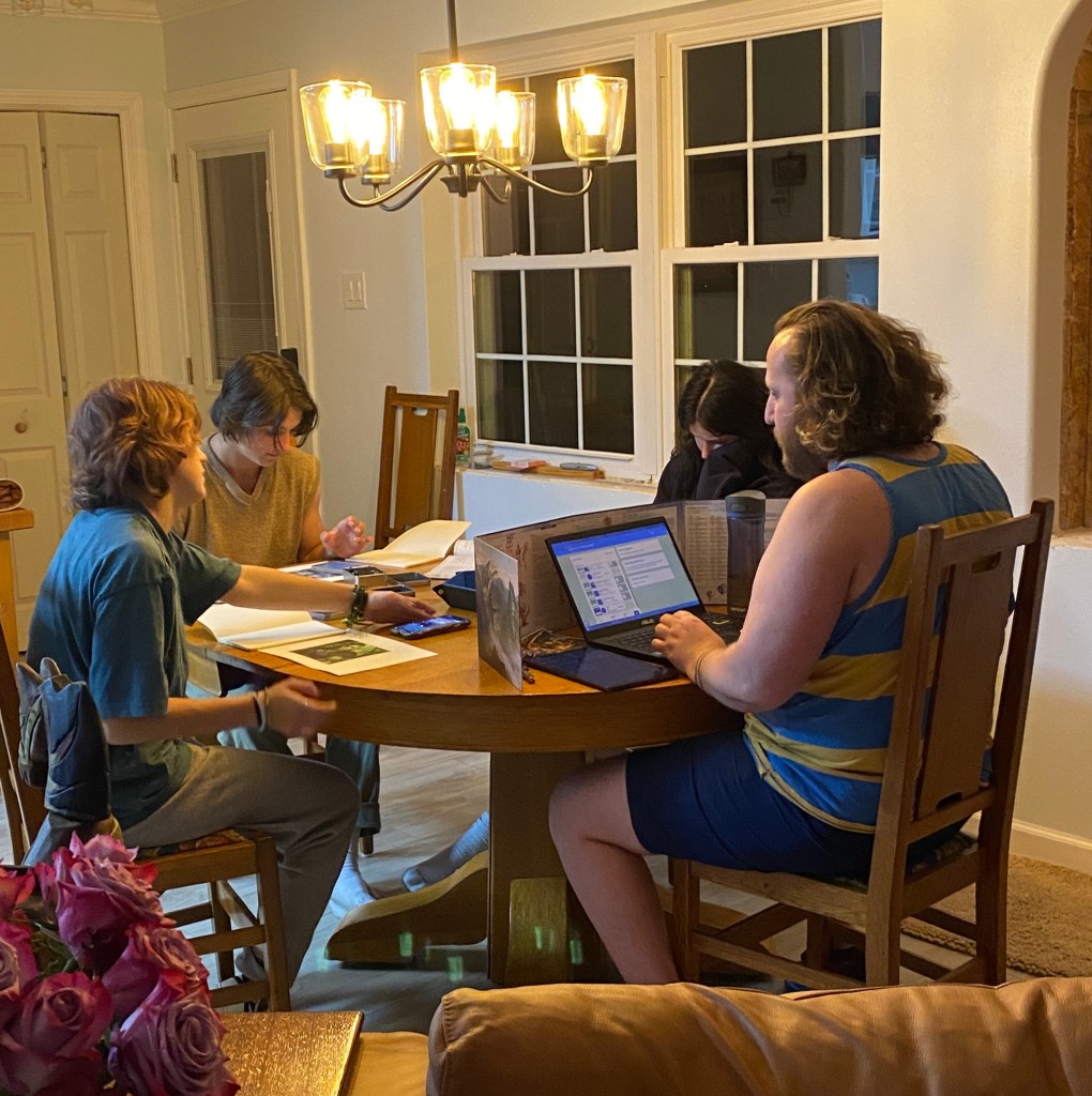 Recently, our son Christopher, and grandchildren Dom, Sophia, and Avila quietly focused on a role playing game around our dining table near while I wrote.