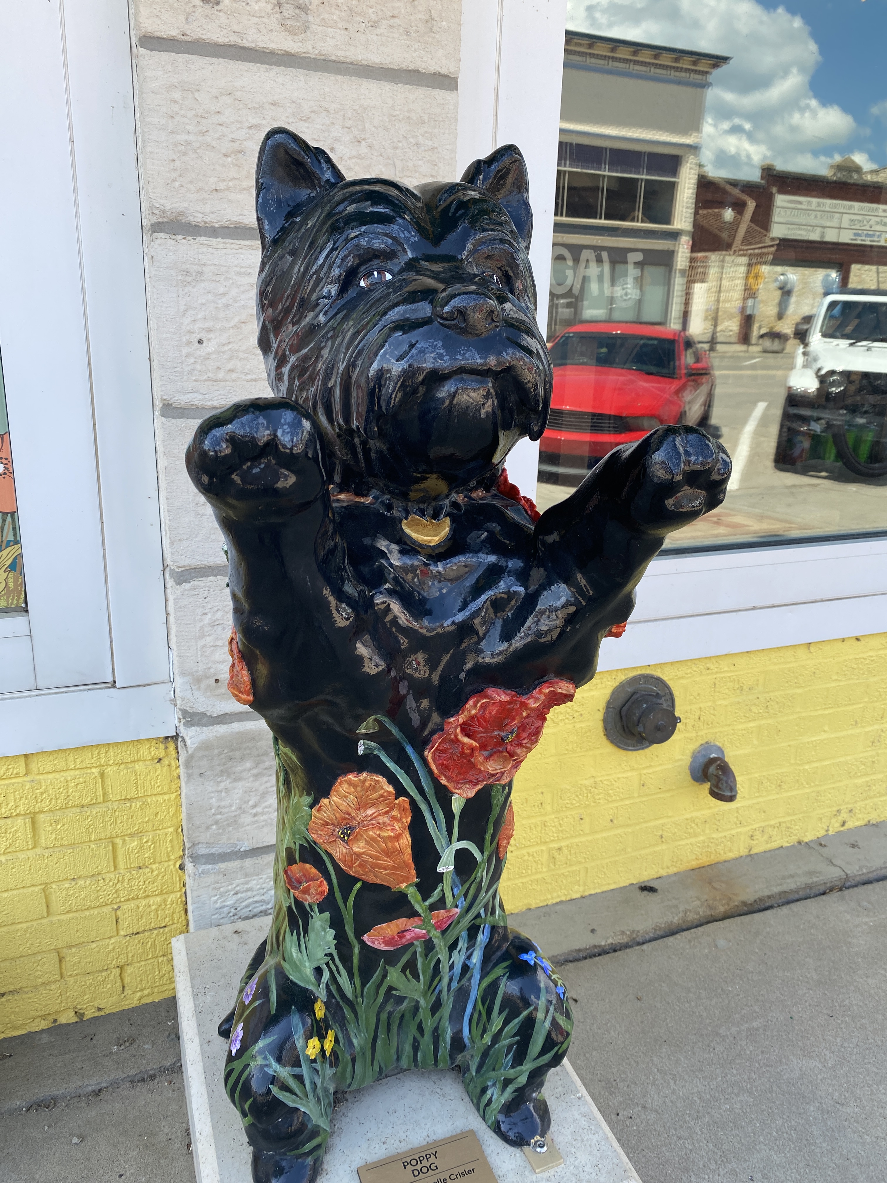 Just three of the statues of the famous “Toto” which adorn the sidewalks of Wamego.