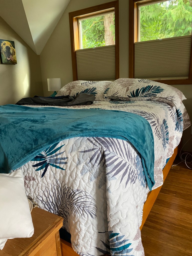 When we arrive in Snohomish, our AirBnB is better than I dreamt possible. Everything is clean and tidy and decorated with my favorite colors. Not only that, but it’s right on the lake. I cry with gratitude.