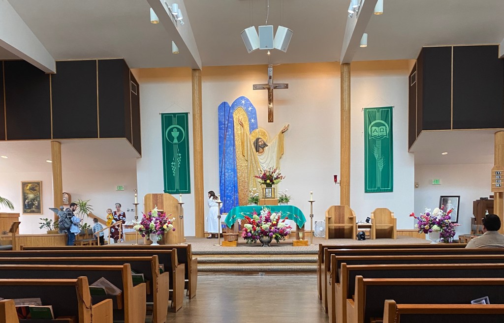 10am Sunday Mass is about 25 minutes away, at St. Michael Parish in Snohomish. There are lots of young families there and afterward, the priest calls the school age children to come forward for a “blessing of the backpacks”. The prayer includes blessings for parents, teachers, and families at the beginning of the school year. Another lively, praying community.