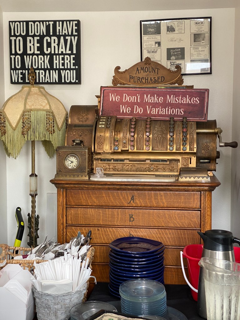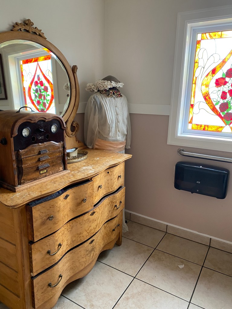 Antique furnishings abound in the Cabbage Patch Restaurant where we lunch . . .
