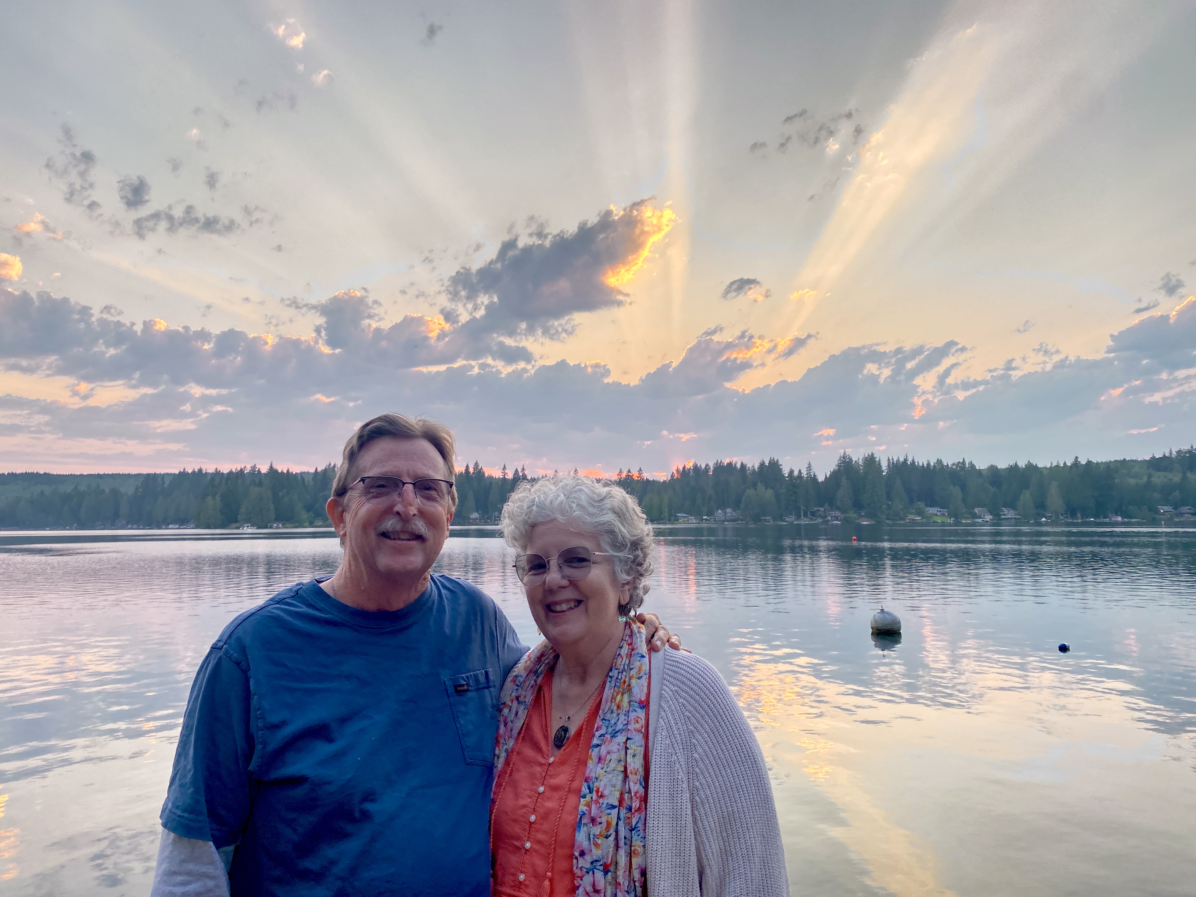 Our host sees us and offers to take a photo of the two of us with the sunset.