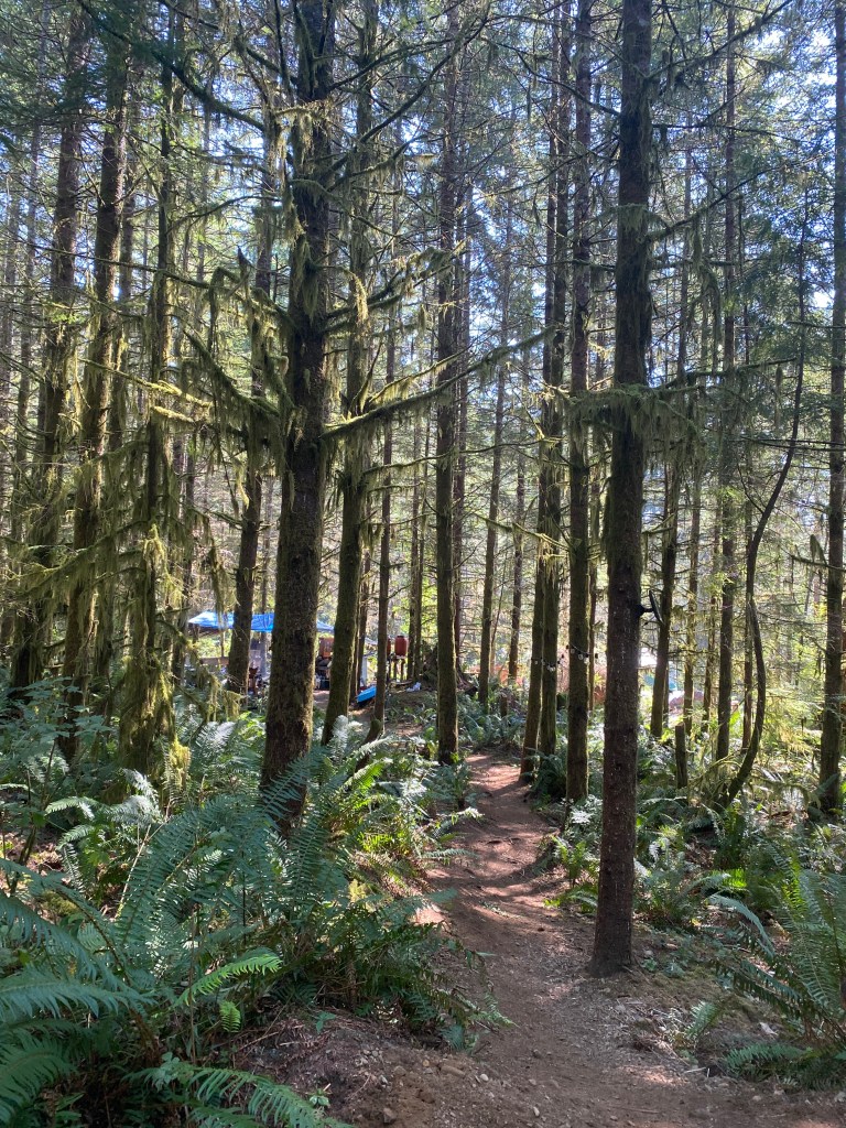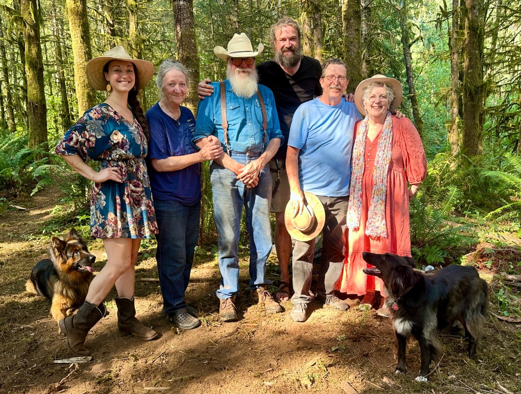 Laundry folded, I text Doug that I’m headed his way. He brings the car to meet me and we park at the base of a hill climbing up the path to the site where Caleb and Janel are making their home.