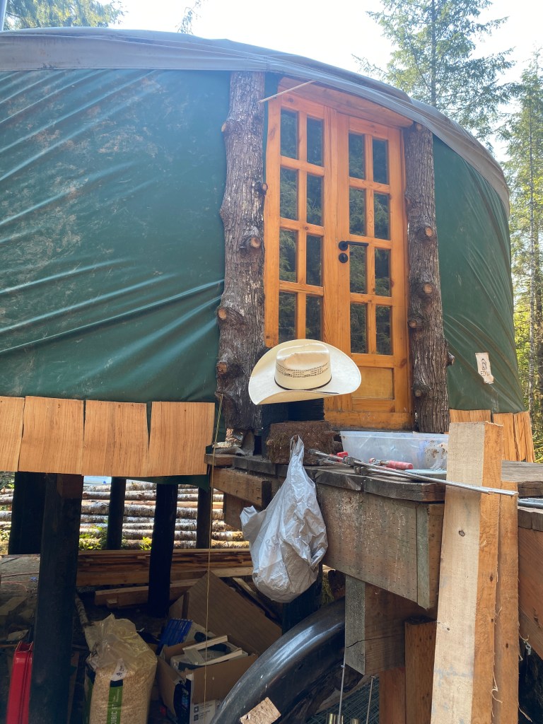 A roomy yurt functions as Caleb and Janel’s primary, but temporary shelter. It offers protection from rain and cold, but heats up quickly on a day like today with a high of 83º. During our stay, they’ve spent all day every day outdoors.