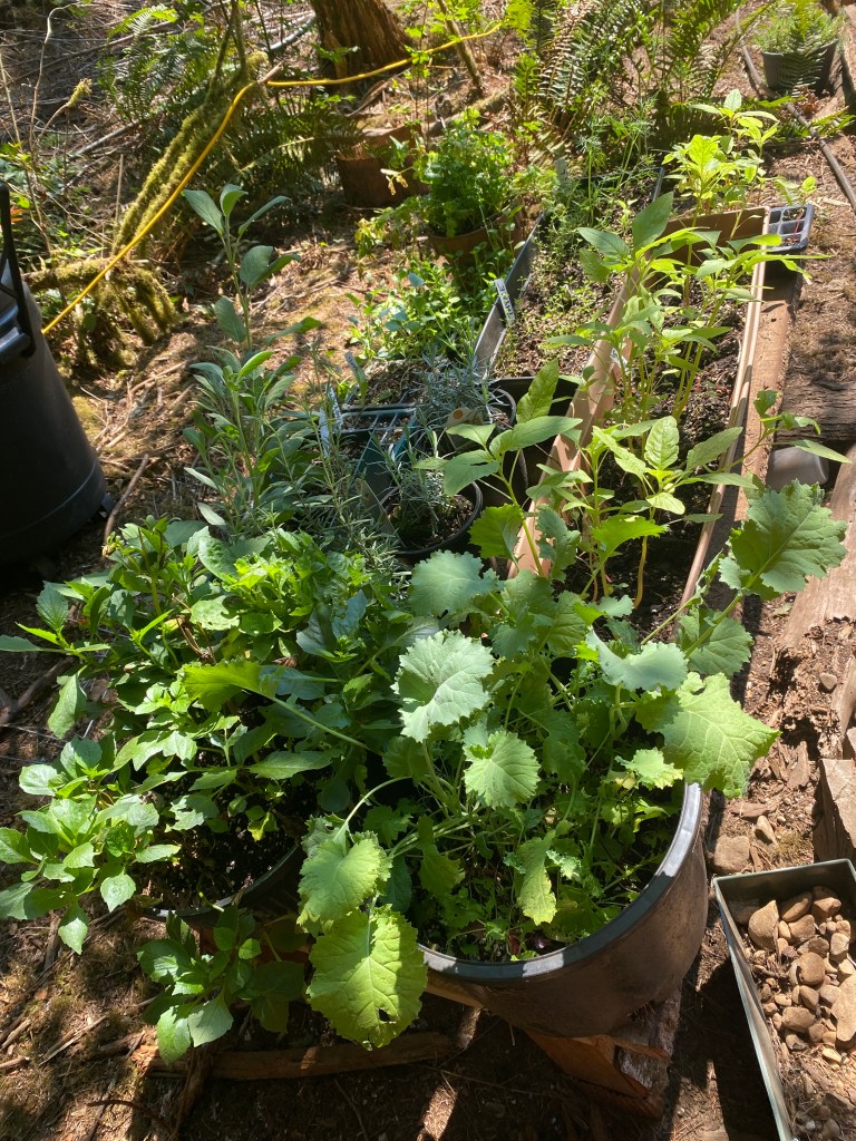 A supply of fresh herbs helps add flavor to the good food prepared in the outdoor kitchen. Both Janel and Caleb are good cooks.