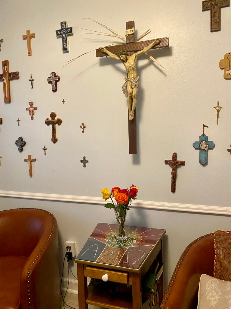 Somewhere in between the unpacking, welcome homes and dinner Doug and I take a few minutes to pray vespers. It feels good and right to pray in our usual seats in the prayer room.