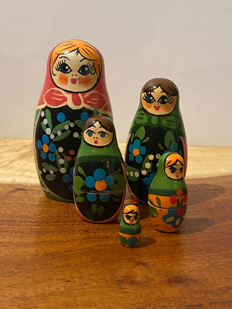 Evan Marie was enamored with this set of Russian dolls – taking them apart and putting them together repeatedly almost every time she came to my house. Then, once she mastered it, she no longer showed any interest in them.